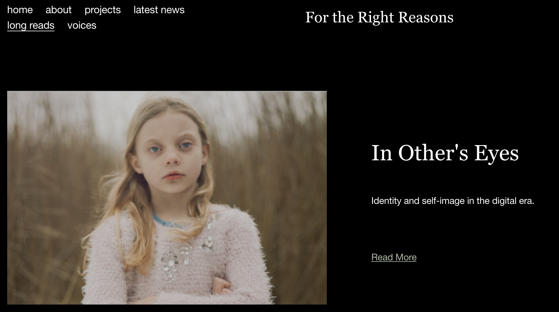 Though it’s closer to the cultural journalistic work collected elsewhere on this website and my feed, I include this featured interview here as an example of longform, in-depth content supporting a brand. In this case, I devoted many hours to interviewing photographer Laura Pannack as flagship content for what was then a new agency, For the Right Reasons. The piece meant to demonstrate the agency’s cultural nous as well as its interest in topical issues – in this case, the influence of social media on Gen Z.
